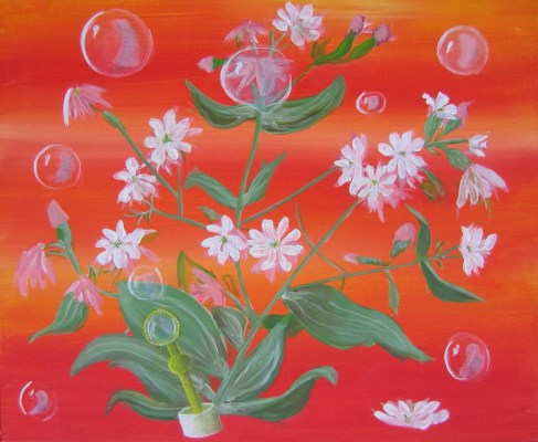 Etude sur le thème des plantes médicinales: la saponnaire, acrylique sur toile, 46 x 38 cm, septembre 2006 (Voir