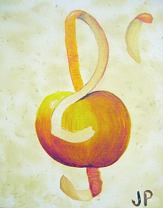 Une autre des activit�s � laquelle il s'essayait � cette p�riode-ci �tait la musique (saxophone). C'est donc une belle association d'images. Tout comme pour la peinture des chapeaux, cette facult� de puiser dans les �v�nements personnel et l'environnement imm�diat les sujets de peinture est tout � fait exemplaire de l'esprit de notre atelier. |
