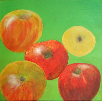 Elle fera plusieurs études, pour les vertus de l'expérimentation de la peinture acrylique. Ici un diptyque pour comparer le grain d'un ballon de basquet avec celui d'une orange. (à suivre...) |