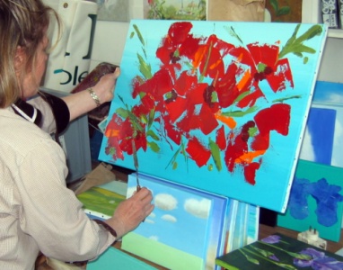 Coquelicots : Tuesday suis son instinct, et jette ses couleurs � l'aide d'un couteau. Voir la peinture