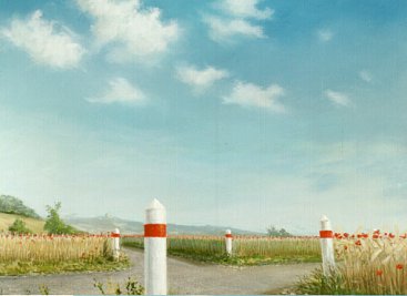 Je suis de retour en France. L'été s'en va déjà. . Vers la fin juillet, je parcours les petites routes du Vexin à la recherche du fragile coquelicot. Je vous montre ici trois des sept peintures que j'ai faites, dans l'intention un peu sadique de les mettre en rang, à la règle. Vous verrez ici plusieurs essais avec des balises routières ou de travaux.. |